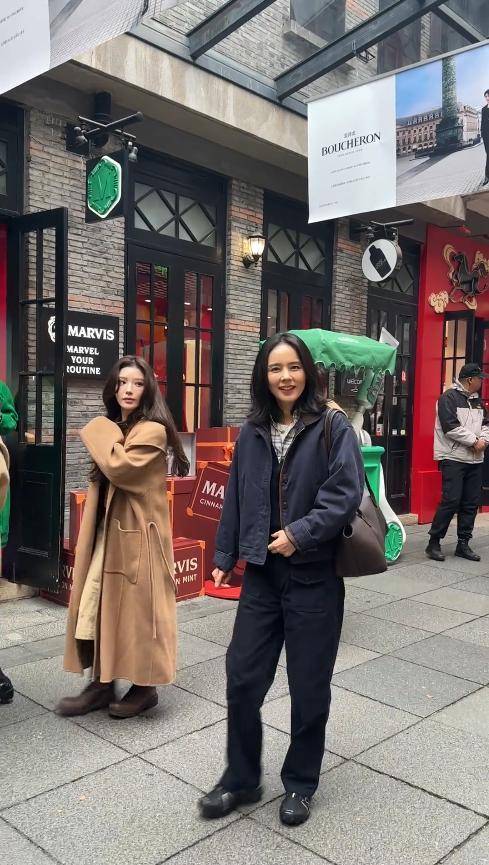 路人镜头下的她,皮肤紧致细腻,没有明显的皱纹,眉眼间还是当年的模样,一点都不像44岁的人。